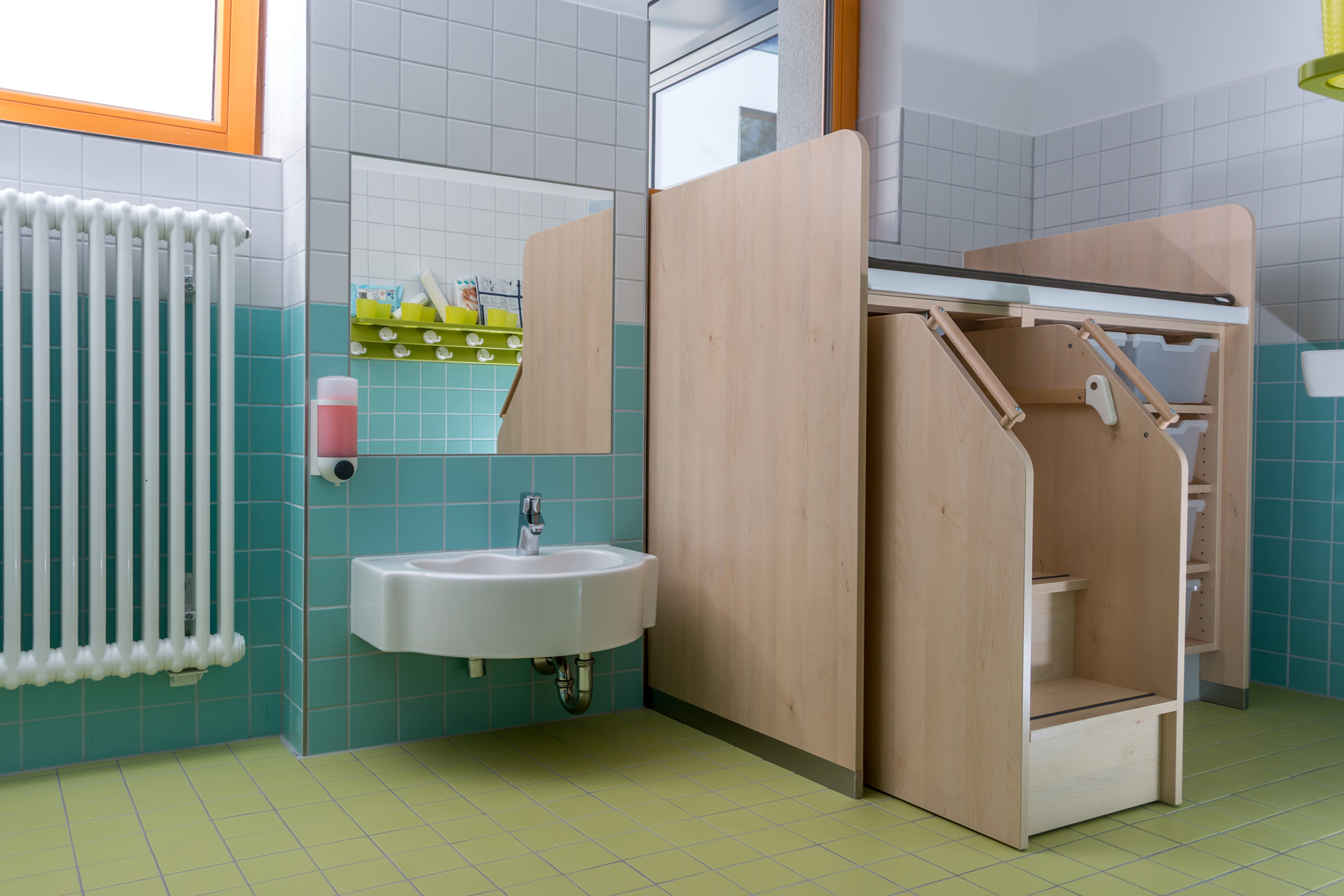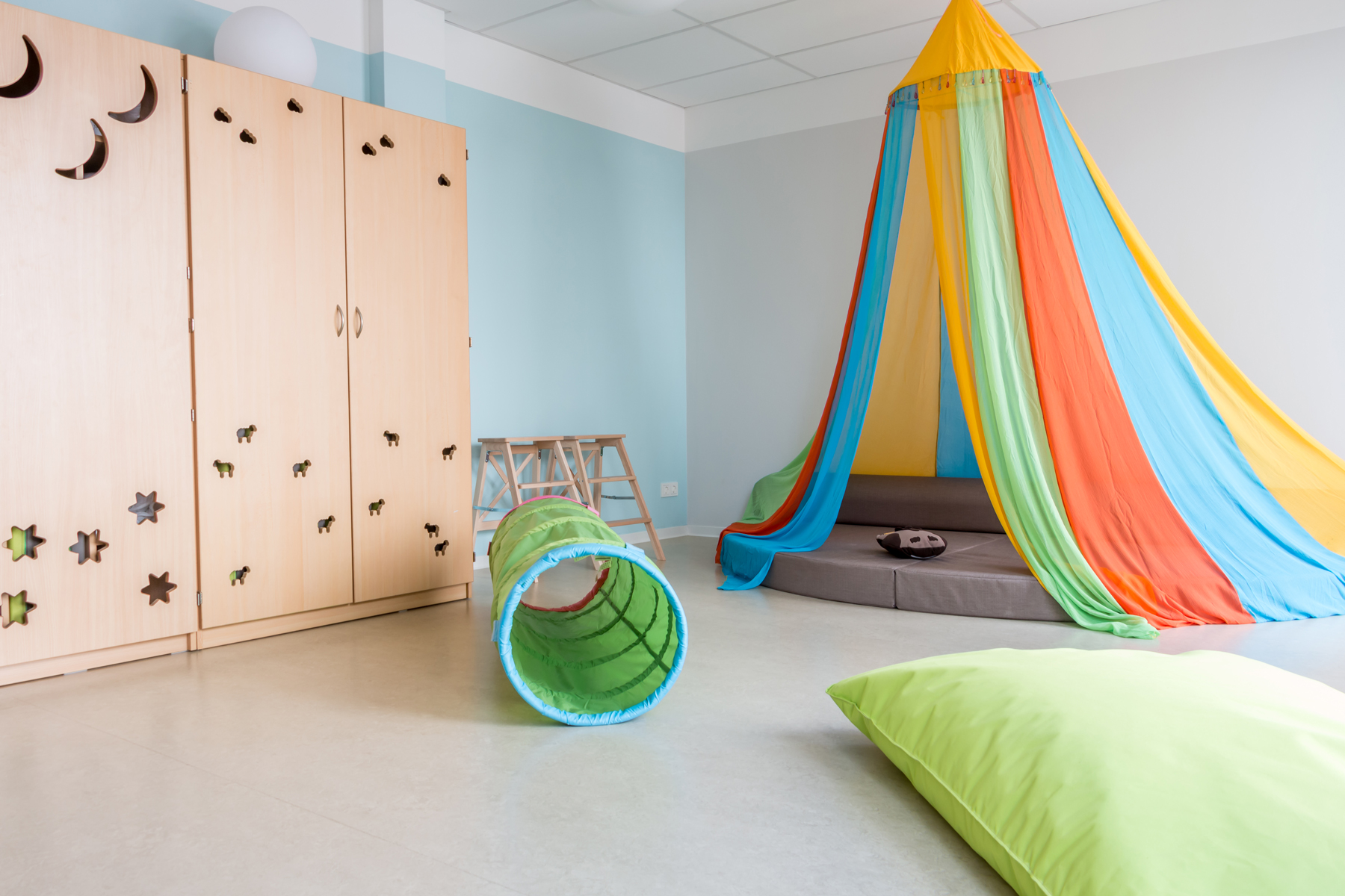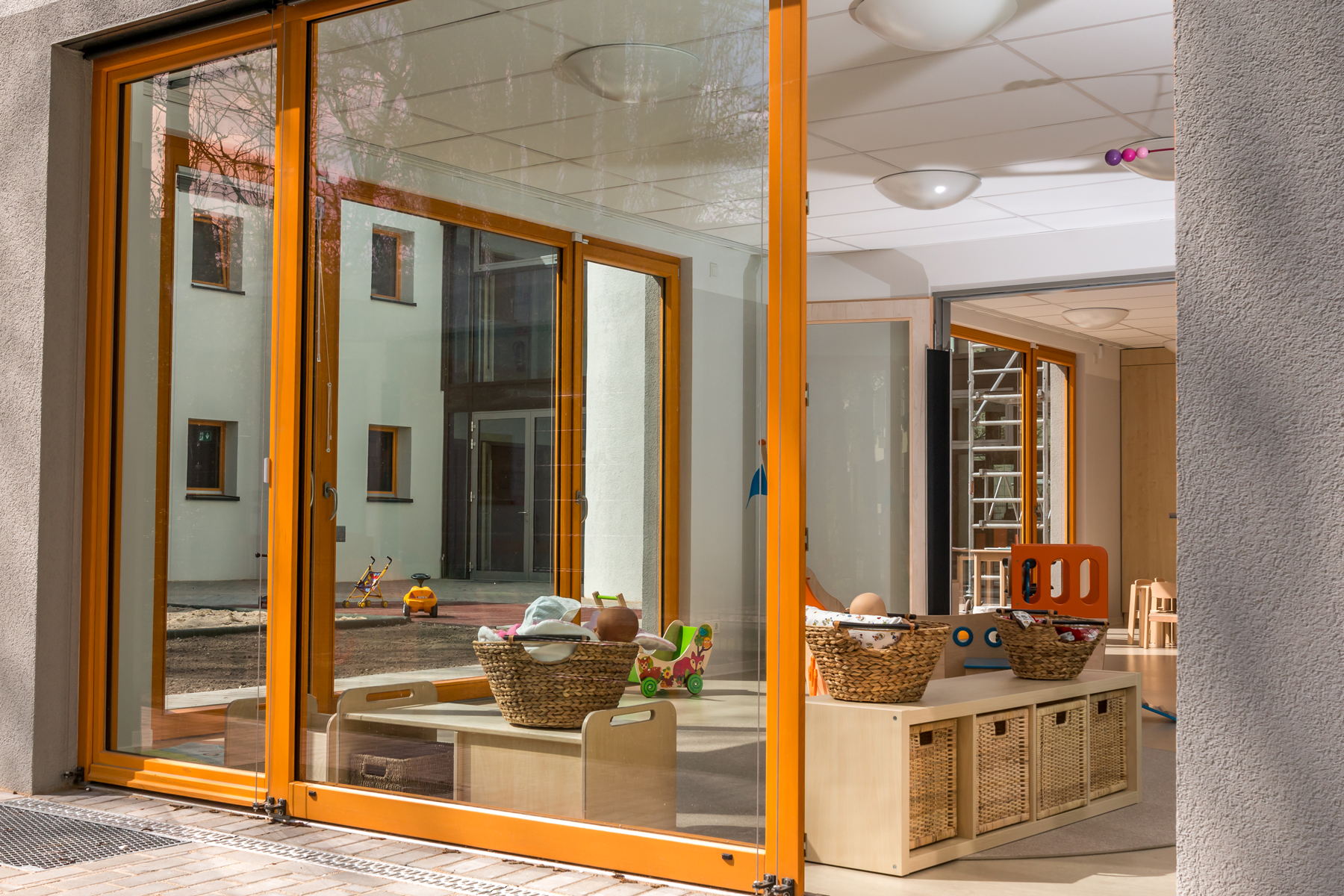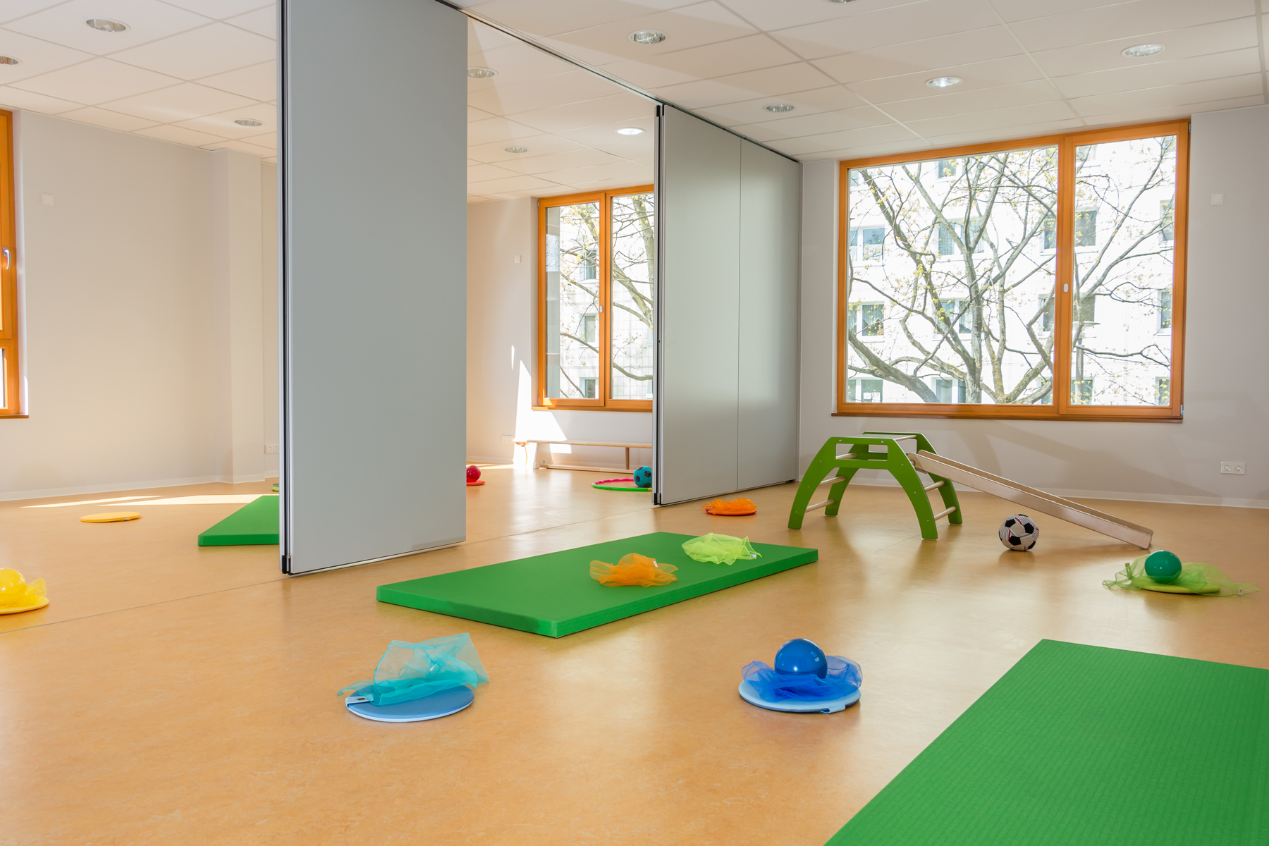 • multifunktionale Gruppenräume mit diversen Schwerpunkten: Ruhe und Rückzug, Sehen/Fühlen/Erfahren, Rollenspiele, Sprach- und