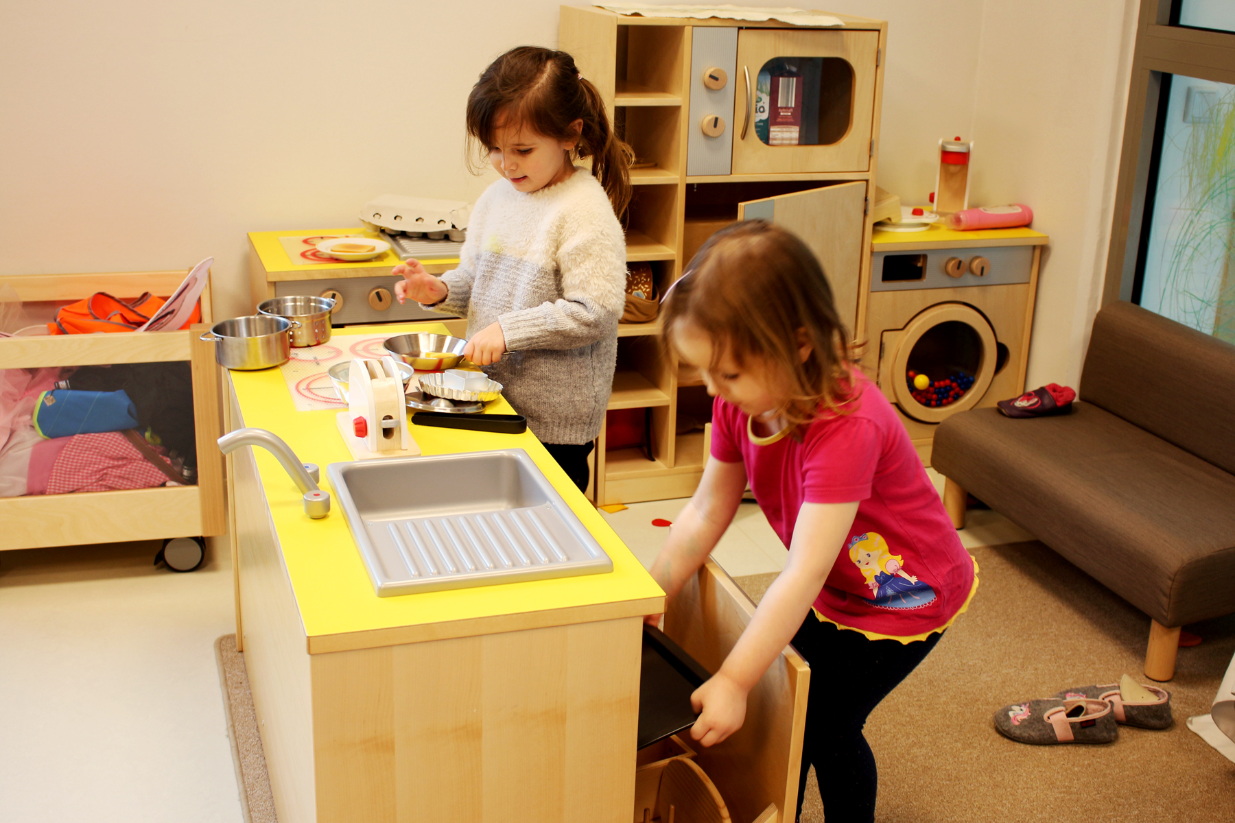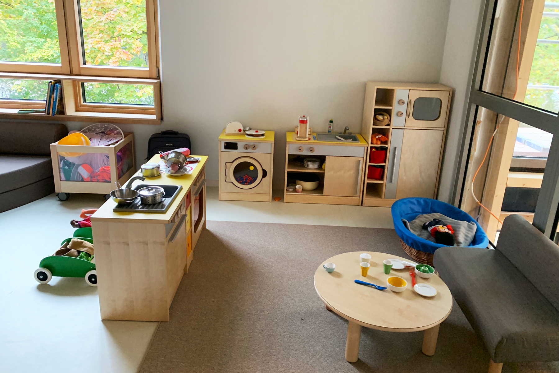 • multifunktionale Gruppenräume mit diversen Schwerpunkten: Ruhe und Rückzug, Sehen/Fühlen/Erfahren, Rollenspiele, Forschen und